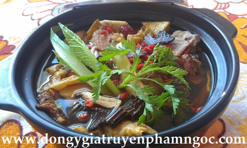 Bài 4:củ sinh địa hoàng 30g, tỏa dương (miền núi gọi là nấm ngọc cẩu)20g, đuôi lợn 150g, gừng tươi 15g, hạt ý dĩ 80 g.